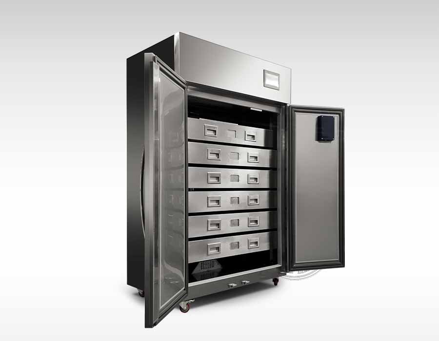1、柜 門:不銹鋼材質(zhì)。(可更好的隔熱、制冷和美觀大方)柜門裝有永磁密封膠條,確保柜內(nèi)的密閉性。